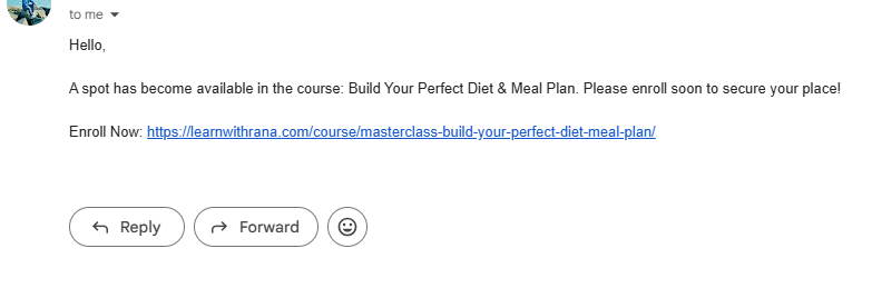 4️⃣ The waitlist feature will now automatically integrate with fully booked courses